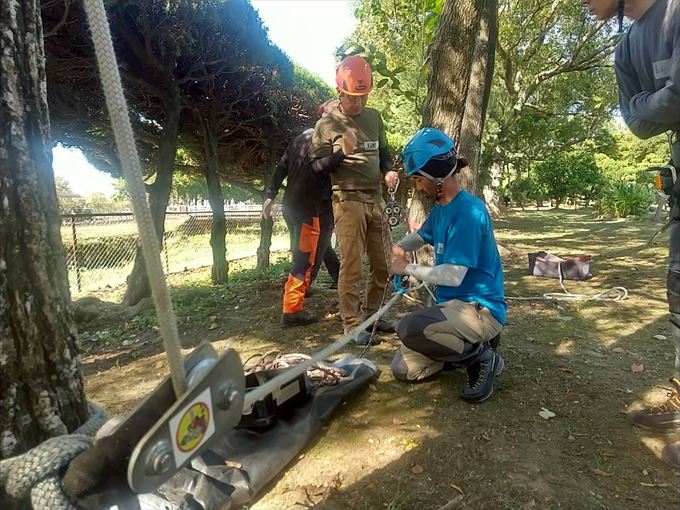 九州内外から6名の受講者が集い、衝撃荷重がかかるリギング、複合的なリギング等を学びました。