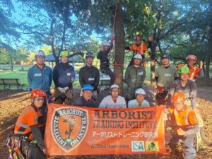 1日目は各個人でスパイクを装着しての上り下りやカッティング練習、2日目に入るとチームに分かれてリギングをセットしての作業を行いました。受講者の多くが、慣れないスパイクでのクライミングで1日目は悪戦苦闘されていましたが、2日目も自分のレベルに合わせ、LOW&SLOWで技術の習得に臨みました。