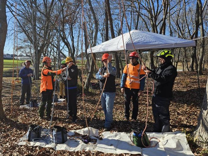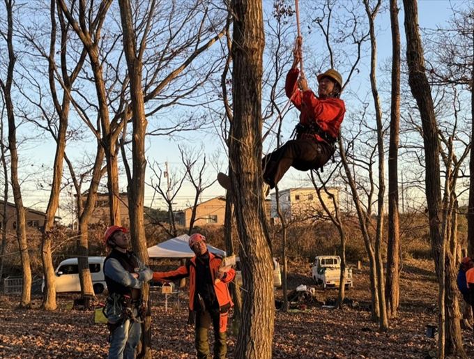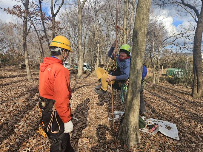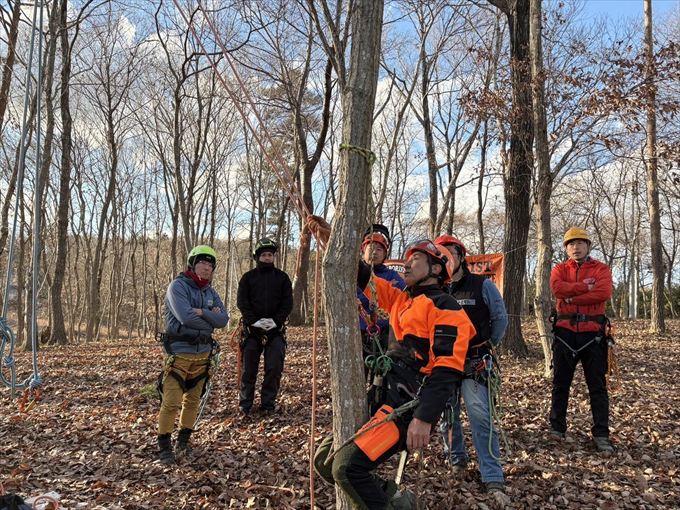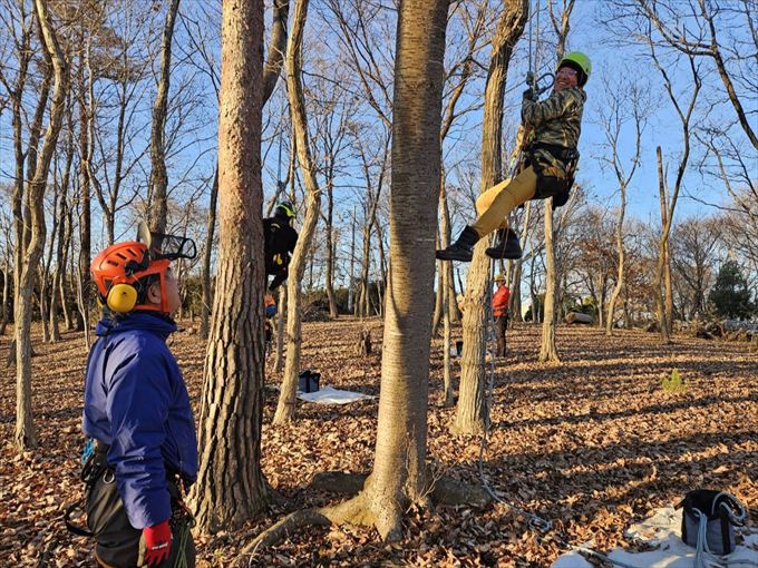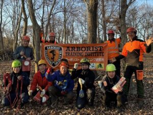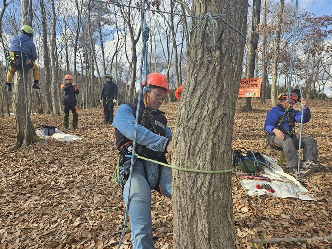 5名の受講生が各地より集結、サプライズで久保田トレーナーも参加、場に更なる熱も加わりました。寒さに負けず皆さん熱心に取り組み、造園系も林業系もそれぞれの環境からテーマを持ち寄り樹芸技術の拡幅を目指しました。