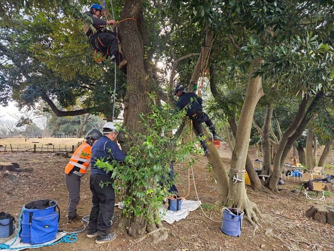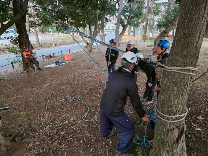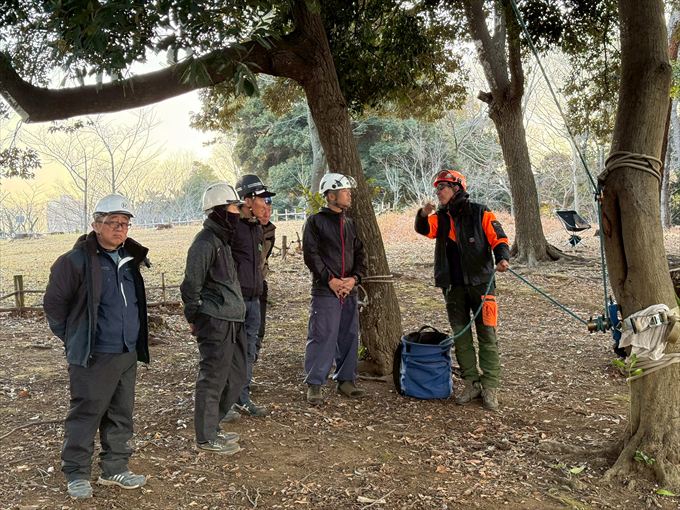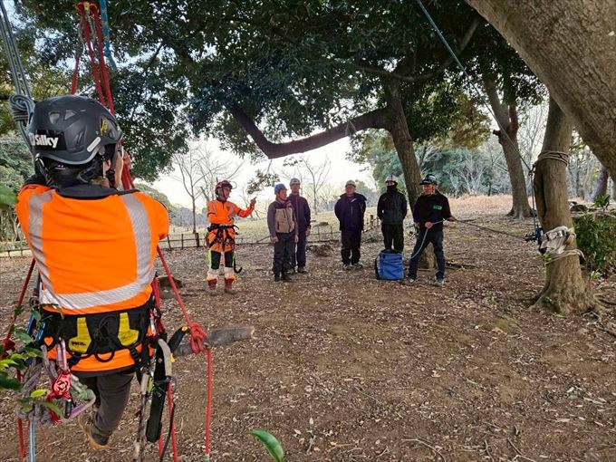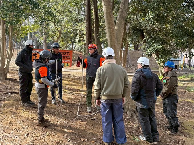 荷重制御の世界へ踏み込みます。体で覚える技術と頭で理解する物理、リギングは科学。フォースとベクトルを読み解く瞬間、皆さんの表情が明るくなるのが印象的でした。ロープワークにも慣れてきましたね。安全の根拠を確信に変えるよう木と向き合い、都度検証、グランドテクニシャンとクライマーの連携を深めましょう。その一手一手が無意識の中でも動き出すように。BAT1.2充実の3日間でした。