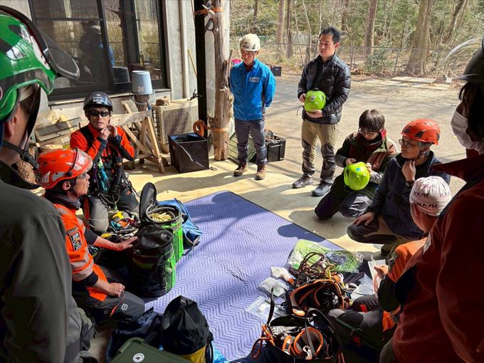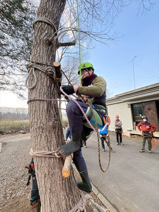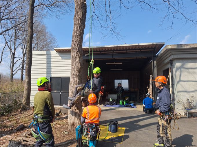 BAT講習を経ての参加、ロープワークがどういうものかと受講された方、様々な背景から樹上作業の知識を共有しました。